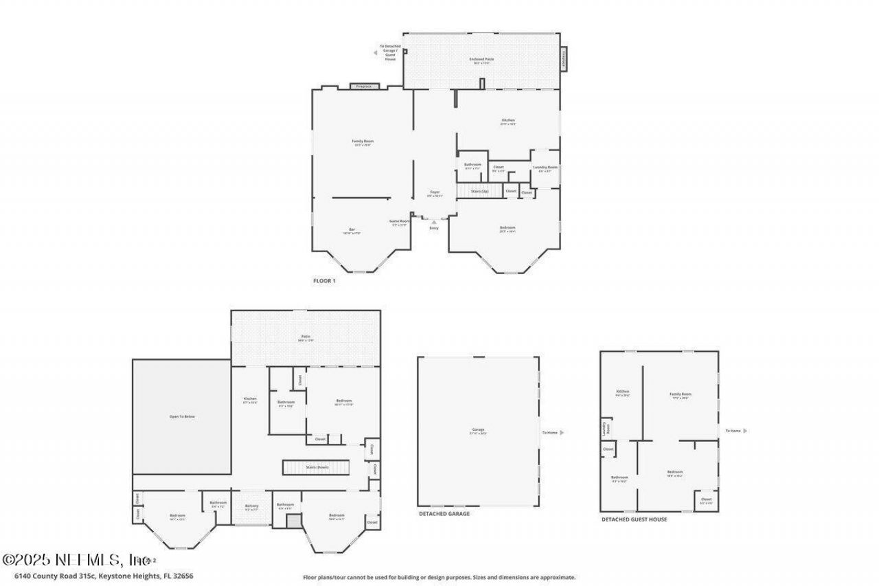 Welcome to your private kingdom-a majestic, custom-designed estate nestled on 4 manicured acres, complete with a serene stocked pond and surrounded by a stately brick wall with an iron gate. This fortress-like masterpiece evokes the grandeur of a modern-day castle, crafted with unmatched precision and an unwavering commitment to quality by its original owner.At the heart of the estate lies a 4-bedroom, 4-bathroom main residence (5,170 sq ft), artfully designed with soaring ceilings, intricate brick archways, and a striking fireplace centerpiece that anchors the grand living space. With two full kitchens and two laundry rooms-strategically placed both upstairs and down-this home effortlessly blends function with elegance. Every detail echoes a sense of permanence and luxury, from the 18-inch-thick, steel-reinforced exterior walls to the 6-inch solid concrete foundation and durable metal roof, secured with double-strapped trusses. Inside, reinforced concrete interior walls and layered high-efficiency insulation create a sanctuary of tranquility and resilience. A state-of-the-art 300-amp electrical system and whole-home surround sound ensure modern convenience within this timeless structure.Outdoors, discover a private resort built for royal-scale entertaining: a sparkling saltwater pool, two fully-equipped outdoor kitchens with dedicated pool bathroom, four BBQ pits, four outdoor showers, and a custom masonry fire pit. Two deep wells provide ample water for the estate, while two detached four-car garages offer abundant space for a car collection, toys, or storage.Above one garage, a beautifully finished 988 sq. ft. guest apartment stands as its own fortress, constructed with 12-inch-thick concrete block walls and featuring a full kitchen, living area, bedroom, bath, and a private deck perfect for hosting guests or generating rental income.Expansive balconies overlook the grounds, offering panoramic views and moments of serene reflection. The spacious bonus/game room and oversized bedrooms offer comfort and flexibility for both everyday living and grand-scale entertaining.This estate is not just a home it's a legacy of strength, elegance, and timeless design. A rare opportunity to own a property that combines the fortified feel of a castle with the refined luxuries of a modern retreat.