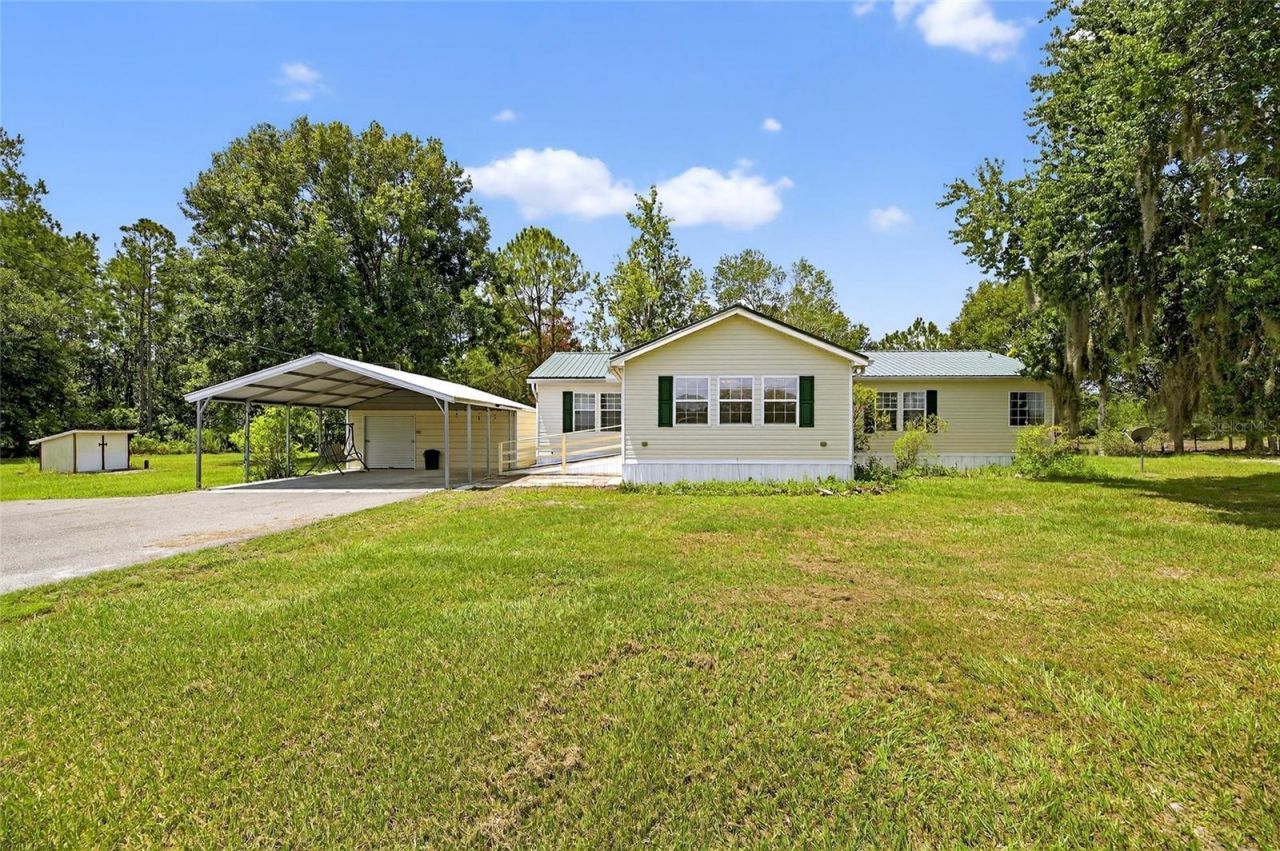 Come take a look at home you can keep all your toys and work equipment. 6.5 acres of fenced land is zoned for Residential & Agriculture. Think of all the things you can do here: store your RV, trailer, farm equipment, raise animals from chickens to horses or build your dream home. The 3 bedroom, 2 bathroom mobile has been converted into a 2/2 for more living room space but can easily be converted back with just one wall. The home has a brand new metal roof, new skirting and the foundation and straps inspected and some replaced. County records have 1456 sq ft but doesn't include the beautiful x 19ft X 14ft (266 Sqft) pine panelled front room that has an AC unit but is not heated (do you need more heat in Florida?) That's 1,722 Sqft under the roof. The property is fully fenced. Includes an enclosed well house, large carport with a storage shed & a long driveway that gives easy access to any vehicle & allows lots of room for parking. Last but not least a mechanic's dream - a 42 x 20 covered workspace which features a concrete slab floor, 8x40 trailer and a loading ramp for loading heavy equipment. The workspace can hold any type of vehicle including, work trucks, heavy equipment, boats & RVs. Enjoy small town living with access to everything with Disney being minutes away!