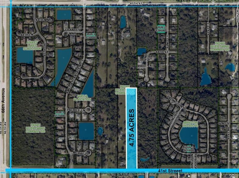 Whether you are searching for a private residential estate, a multigenerational family compound, or your next development opportunity, this 4.75-acre Vero Beach parcel delivers on all fronts. Two existing structures with a pool and two income-producing tenants generating $3,600/month make this a productive asset from day one. RS-3 zoning with L-1 FLU supports up to 14 single-family lots by right with no rezoning required. Fully cleared site with infrastructure in place. Dont miss this versatile opportunity in the heart of Vero Beach.