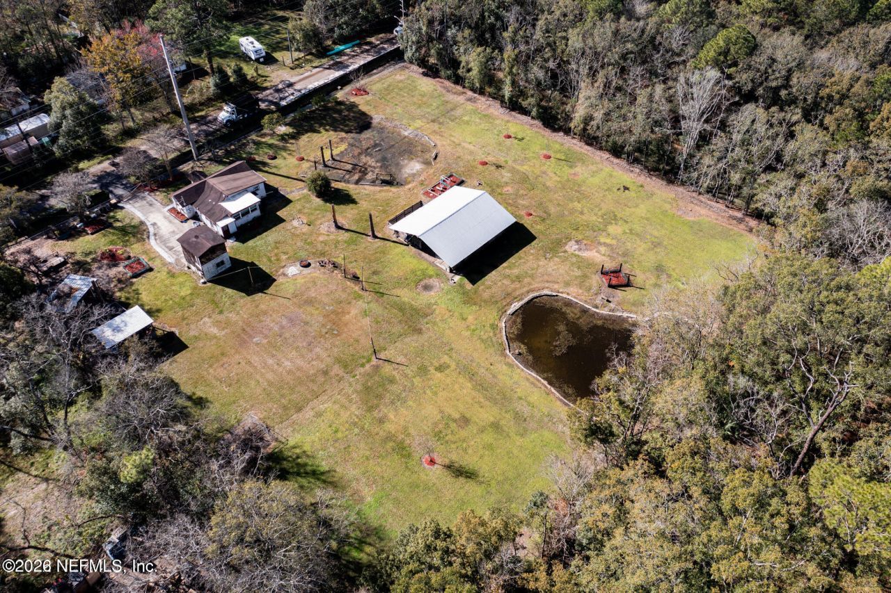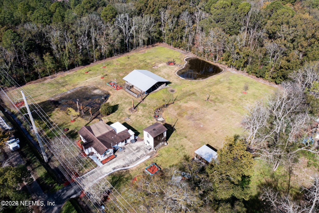 Welcome home to this warm and inviting bungalow sitting on 1.908 - almost 2 acres acres with a functional barn, a detached shed with electric and AC . Also, on the property is an additional separate storage unit, that is sold as is. This property was once known as Chinaberry Farms. This is a one of a kind opportunity to own a unique property conveniently off 295 close to Downtown Jax and short drive to NAS. Please note - home orginally was a three bedroom and can be converted back. The half bath is located in the storage building .
