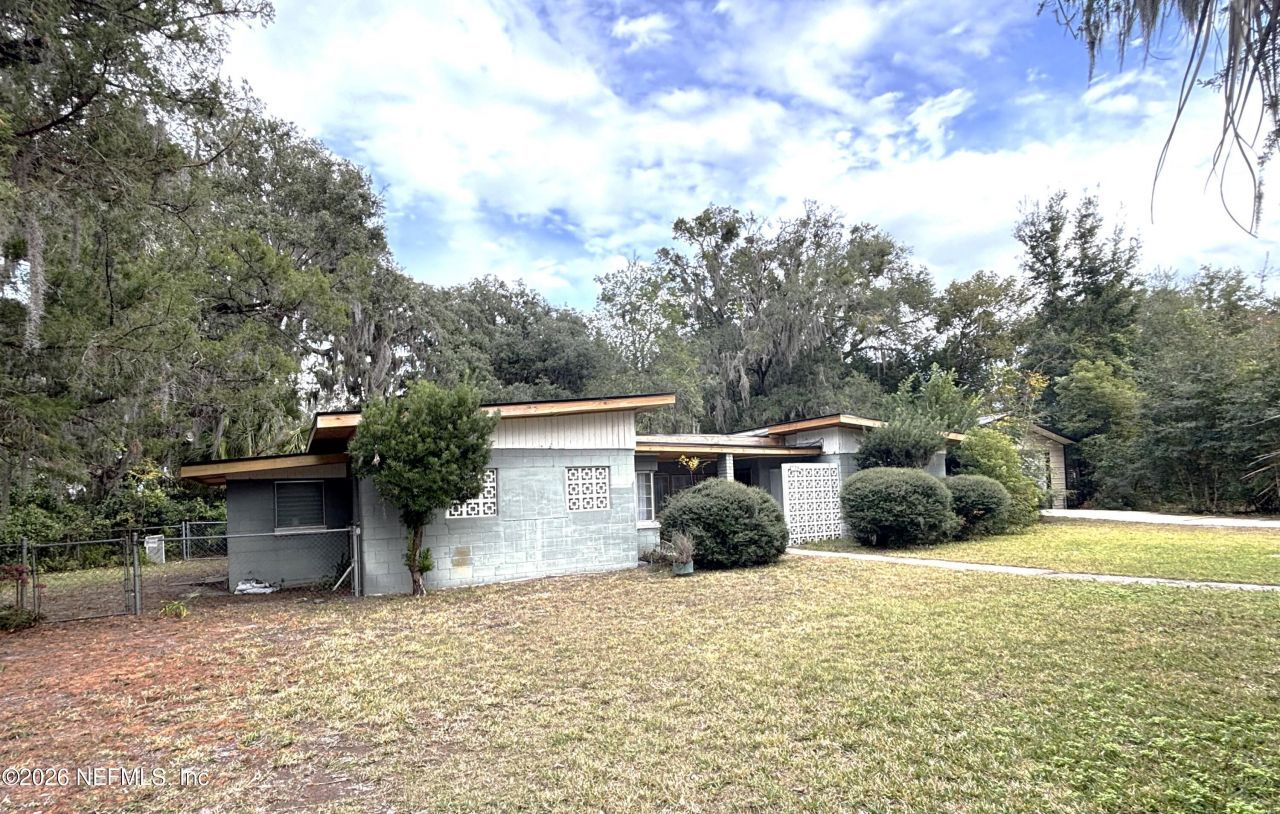 This home is classic mid century style - all it needs is you to bring it back to it's full potential. Home needs renovation but has a new roof, new electrical service coming into home. Need storage or a workshop/garage? There is a 1 year old 28 ft x 55 ft x 9 ft metal garage with spray foam insulation on roof and walls with 4 roll up doors and 3 personnel doors. Home is located on large double lot - with a total acreage of .473. Need more space? Adjoining Lot/Home at 725 Myrtle is also for sale! Allowing you to have a total of almost .80 acres! MLS 2128471 This home is located on one of the most beautiful brick paved streets in Historic Green Cove Springs. Just blocks to the famous Springs Park - and one block off the St Johns River.