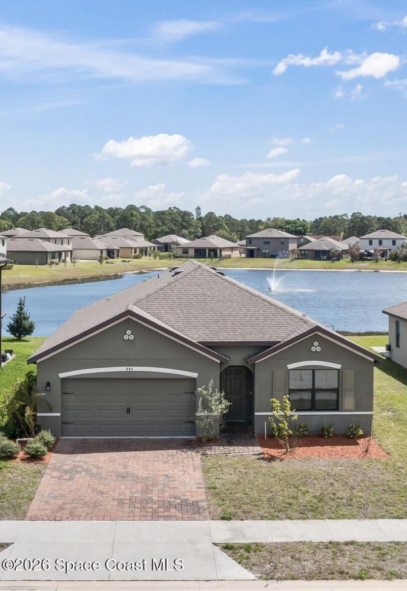 Welcome to your private retreat in the highly sought-after Preserves at Stonebriar in Bayside Lakes! This well maintained 4 bedroom, 2 bath home offers the perfect blend of comfort, space, and serene waterfront living. Situated on a picturesque pond with a tranquil fountain, this home delivers peaceful views right from your own backyard-ideal for morning coffee or evening relaxation. Inside, youll find a spacious and functional floor plan with generous living areas, a well appointed kitchen, and plenty of natural light throughout. With tile floors throughout the main living and wet areas, and a large kitchen island, this open concept floor plan is perfect for everyday family gatherings or entertaining guests! The split bedroom layout provides privacy for the primary suite, while 3 additional bedrooms offer flexibility for family, guests, or a home office. The primary en-suite includes a large bathroom with private water closet, double vanity, linen and large walk in closets! Built in 2020, you will have peace of mind for many more years allowing you to enjoy the active, family oriented community, calming water views and a well kept community, with the community pool and playground just walking distance from your home. In desirable Bayside Lakes, residents enjoy extra top notch amenities including another community pool, clubhouse, tennis courts, basketball courts, fitness center, jogging path, park, sauna shuffleboard and more! Dont miss the opportunity to own this waterfront gem in one of Palm Bays most desirable neighborhoods, all just minutes from shopping, dining, and everyday conveniences!