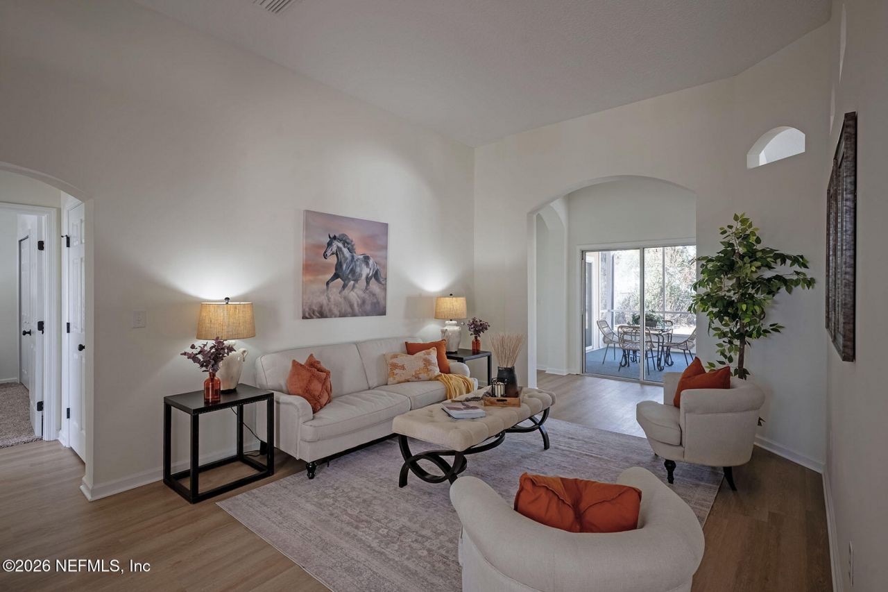 NOW FHA eligible !!! This beautifully updated four-bedroom, three-bathroom home offers 2,415 square feet of thoughtfully designed living space featuring LVP flooring throughout the main areas, carpeted bedrooms, 2 bathrooms are tiled . New lighting and ceiling fans, and sleek all-black interior fixtures. The kitchen showcases quartz countertops and stainless steel appliances that convey, including cooktop and double wall ovens ( one is convection ) , refrigerator, microwave, dishwasher, and disposer. Kitchen opens to a bright living area highlighted by a large picture window and sliding glass doors leading to the screened back porch. The spacious primary suite features a walk-in closet and a stylish barn door leading into the remodeled primary bathroom, which includes a soaker tub, separate tiled walk-in shower, private water closet, and dual his-and-hers sinks with quartz countertops. Wood burning fireplace !! Two additional bedrooms are connected by a Jack-and-Jill bathroom with double sinks, and all bathrooms have been remodeled. Additional interior features include an inside laundry room with washer and dryer included !! Two-car finished garage. Exterior highlights include a freshly painted stucco exterior, a front paver sidewalk, a screened back porch overlooking the white vinyl fenced backyard with a storage shed, white metal windows and gutters. NEW 2026 roof, a 2014 HVAC system that has been recently serviced, and a 200-amp Square D electrical panel.