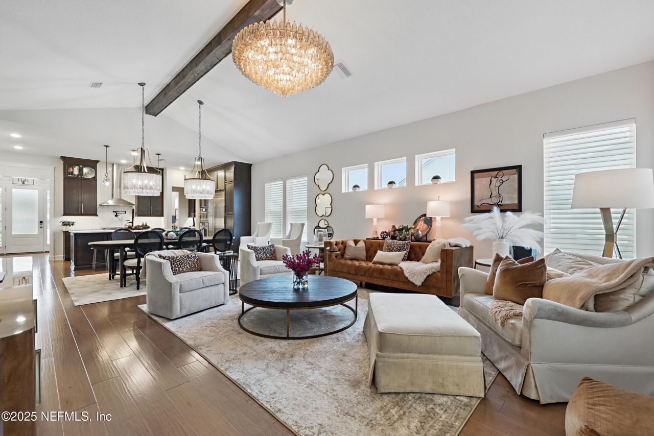 Ask about lender incentives!!! True luxury in this brand-new Fall 2024 home- upgraded after building with features you simply can't get from a builder. Loaded with high-end finishes, including a SubZero refrigerator, freezer, and beverage center, THREE Restoration Hardware chandeliers, Restoration Hardware pendant lights, electronic upgraded blinds, an outdoor fireplace with mantel, brand-new irrigation system, Rev-a-Shelf drawer organizer, custom master closet, designer wallpaper in the office and living room, exterior lighting, unique palms and landscaping, full gutters, and a fenced backyard.Inside this Providence ''Cooper'' Model, the open-concept floor plan offers 4 spacious bedrooms, 3 beautifully designed bathrooms, and nearly 2,800 square feet of refined living space. Dramatic beamed cathedral ceilings and a striking 54'' chandelier set the tone for the main living area, while wide-plank hardwood floors run throughout. The custom closet systems in both the owner's suite and pantry provide unmatched organization, and the epoxy-coated garage floor adds durability with style.Step outside to a screened lanai with a cozy fireplace, designed for year-round enjoyment. This home also sits directly across from a brand-new park with a pool and covered playground, and is just a quick golf cart ride from the newest Seabrook school opening for the 2026-27 school year.Living in Nocatee means access to world-class amenities: two resort-style waterparks, multiple neighborhood pools, playgrounds, dog parks, miles of greenway trails, a kayak launch, fitness center, pickleball, tennis, and basketball courts all within a golf cart-friendly community. Plus, you're just minutes from the pristine beaches of Ponte Vedra.This stunning Nocatee home blends modern luxury with thoughtful upgrades, offering more than new construction ever could. Don't miss your chance to own this one-of-a-kind gem.
