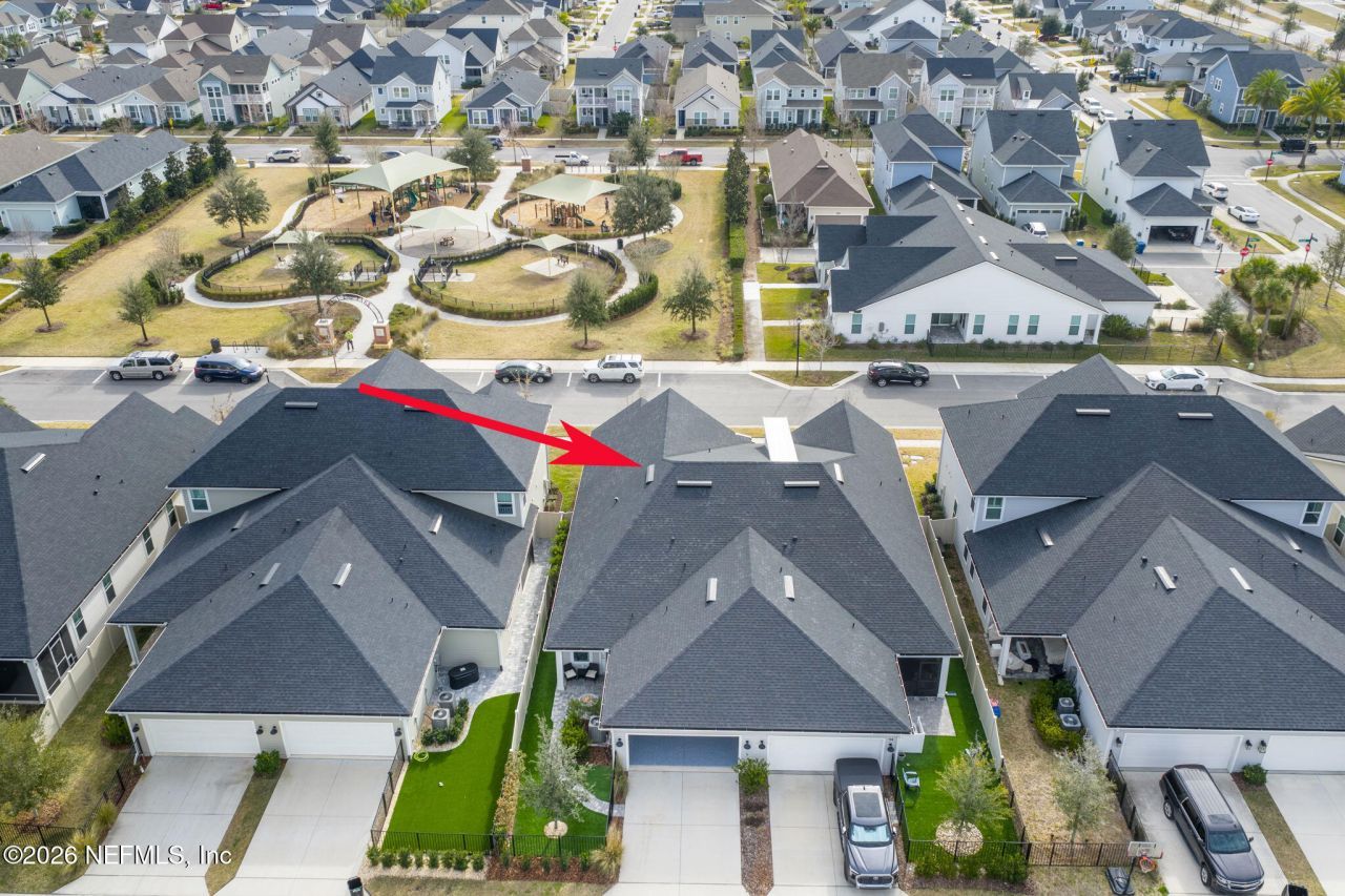 Like new, crisp, modern Villa with designer finishes throughout. The community park is just across the street. Live the vibrant Town Center lifestyle with restaurants, shopping, pools, gyms, a lazy river, bike paths, tennis, pickleball and more within walking distance...or golf cart if you prefer. Enjoy all that Nocatee has to offer. This home's amazing kitchen is open to the living areas with a large island and plenty of seating around it, perfect for entertaining. Natural gas cooktop, Quartz countertops, gorgeous tile backsplash, premium cabinets & stainless appliances make being in the kitchen a joy. No carpet anywhere. Luxury Vinyl Plank Flooring throughout the living areas and bedrooms with fun, designer tile in the bathrooms. The primary closet has been built out with organizers. There is a whole home water softener already in place. Out back enjoy the firepit and performance turf fenced back yard. The garage has just been finished with a premium floor coating. The inside of the house has recently been painted. It doesn't get any fresher than this house.
