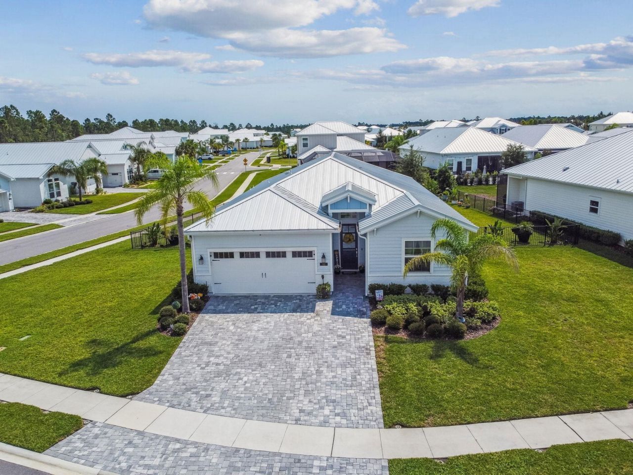 Welcome to Beachwalk, Trevi Model, where resort-style living meets everyday comfort! This very well maintained, 4-bedroom, 3 bath home is loaded with upgrades and sits on a big, desirable corner lot. Inside, you'll find custom built-in closets throughout, upgraded finishes, and a bright, open layout, perfect for entertaining. The home boasts a widened 3-car driveway, extended pavers & lanai, permanent exterior lighting, and an apoxy-coated garage floor with custom built storage. A durable metal roof adds style and peace of mind. Beachwalk is an incredible golf cart community and offers over the top amenities, including a 14-acre lagoon, with a swim-up bar, clubhouse, fitness center, walking and golf cart paths, dog splash park and more. Located right on County Road 210, one mile off of I-95. Publix, several restaurants, Kilwin's, Wawa, and Lowe's & BJ's right outside the community for added convenience. Walk or take your golf cart to any of these anytime. The custom permanent lighting from the app on your phone, allows for never having to hang Christmas Lights on the elevations of your house anymore. You can change them to any color, with pre-saved special holiday automatic settings that you can change from anywhere you are. Sprinkler system has been upgraded and all zones protected with cement rings around each sprinkler head. Garage has been meticulously upgraded with toolbox storage, custom hanging hooks for all your lawn tools and beach items and an electric car charger installed. Fully fenced back yard with lots of beautiful foliage, fire pit area with paved walkway and lots of lights at night to set the mood. This home combines luxury, location and lifestyle. Schedule your private showing before it's gone! This one is priced to sell. Seller will pay the one-time initiation fee to the lagoon with an accepted offer.