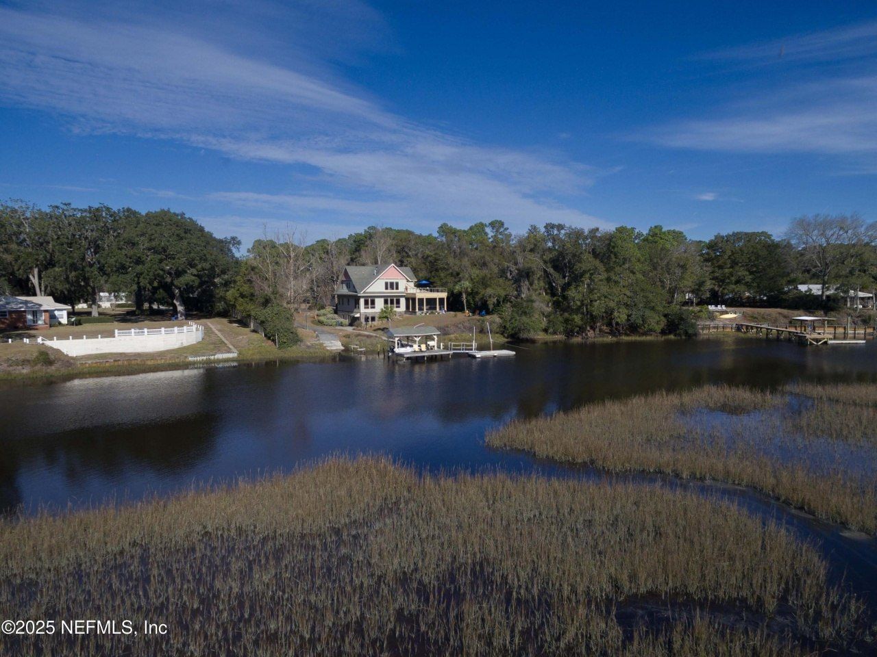 An architectural masterpiece with unparalleled river and marsh views.Perched atop a natural bluff, (no flood insurance required) with direct access to the Nassau River, and Atlantic Ocean. 150 feet of prime shoreline, complete with a dock, boat lift, boat house, and boat ramp, on 1.5 acres. New roof, and all HVAC units are less than 1 yr. Andersen impact windows and doors offer security with beauty. Birch plank floors, solid Cherry cabinets, local Cypress, and hand-turned Maple complement the design. The owner's suite features a spacious private balcony, an executive office, sitting room, deck, and an expansive walk-in closet. A ground floor second suite with a separate entrance, kitchenette, and bath, offers privacy and convenience for guests or multigenerational living arrangements. Enjoy expansive screened-in patios, a charming side porch, and a bluff-side fire pit. Blocked and wired for an elevator.