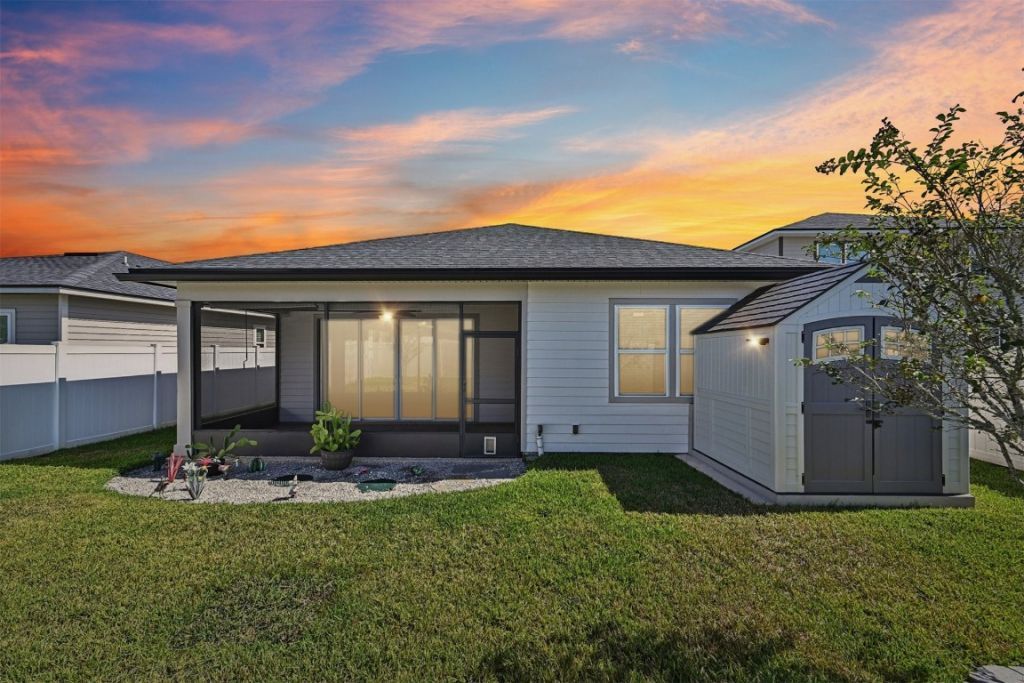 Beautifully maintained 4BR/2BA home in the Village of Woodbridge, Nassau County. This 1,811 sq ft home features lots of upgrades, including custom crown molding throughout, eye-catching designer light fixtures, and an open-concept layout that flows effortlessly from room to room. The kitchen features striking granite countertops, sleek black appliances, a bold mosaic tile backsplash, and a spacious island with pendant lighting?perfect for both casual meals and entertaining. The living room features a Hunter-Douglas sun-shade curtain and a surround sound system. The primary suite features a walk-in closet and an en-suite bathroom with dual sinks, custom-framed mirrors, and a walk-in shower. Enjoy the screened-in back patio and fully fenced backyard with gates on both sides and a tool shed. Includes indoor laundry with washer/dryer, irrigation system, water softener, security system, and durable floor coatings in the garage and patio. Move-in ready and full of upgrades
