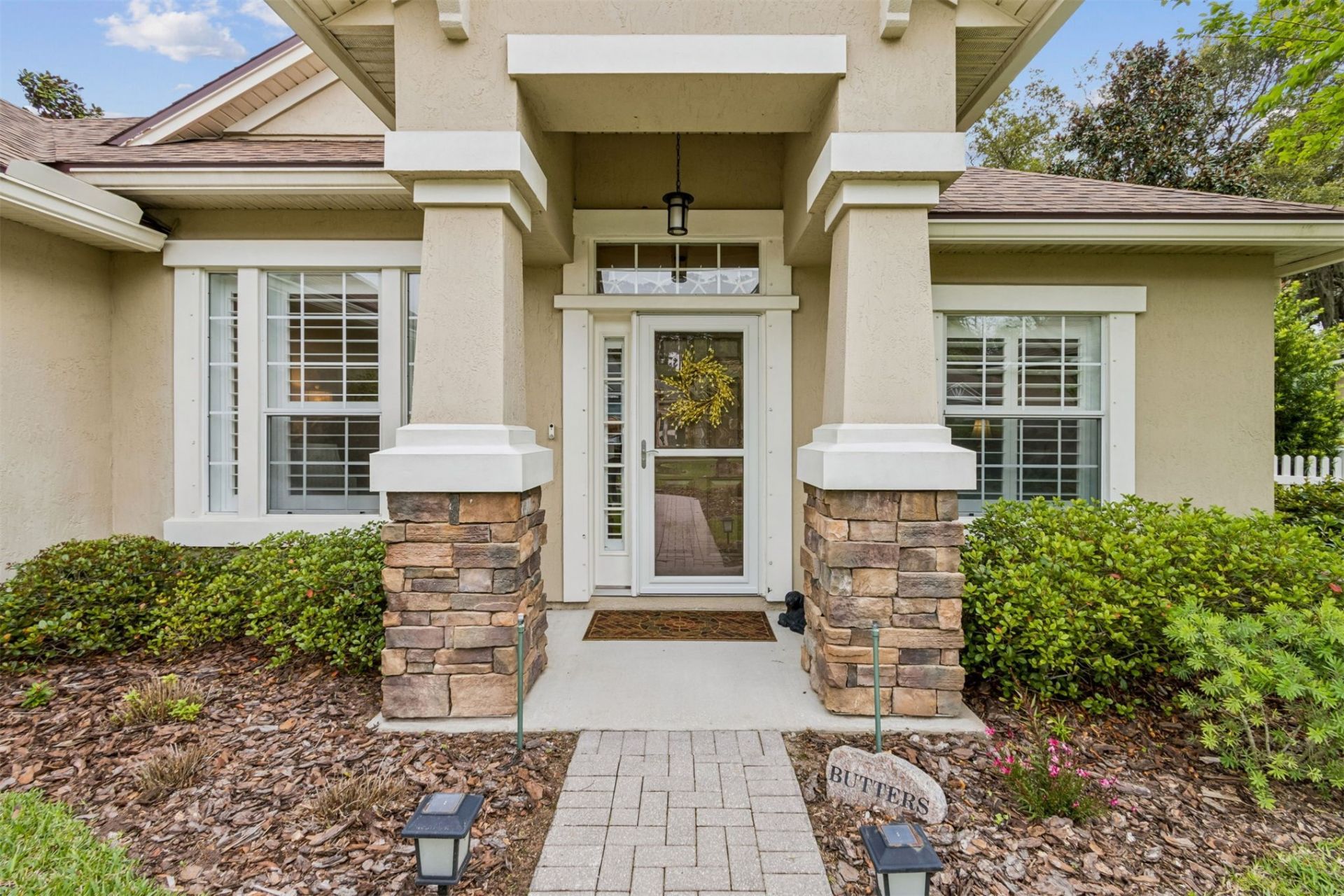Beautifully updated and move-in ready, this exceptional home offers refined coastal living in a prime location. Thoughtfully enhanced with attention to every detail, with over $100K of custom grade improvements inside and out, nothing has been overlooked. White picket-fenced back and side yards, paver driveway and walkway, new architectural roof, and thoughtful landscaping add to the home's impressive curb appeal. The spacious screened-in lanai leads you out to a private and maintenance-free back yard with newly installed high-end artificial grass and a stone retaining wall. Enjoy the tranquility, listen to the songbirds, and watch for herons and owls that frequent the spring-fed tidal creek. Inside, the chef's kitchen features a beautiful tile backsplash, an oversized island, quartz countertops, custom pantry storage, and smart under-cabinet lighting, designed for effortless entertaining and everyday living. Premium carpentry includes 4 plantation shutters throughout, custom closets, and bamboo hardwood flooring. A premium, variable-speed, brand-new Trane HVAC system, Wi-Fi-enabled garage door opener, smart irrigation control, whole-house water filter, and a salt-free softener enhance comfort and efficiency. The spacious primary suite offers a relaxing retreat with quartz dual vanities, a soaking tub, a separate shower, and an oversized walk-in custom closet system. Additional highlights include whole-home hurricane shutters and thoughtfully designed storage throughout. Blending modern upgrades with timeless style and low-maintenance outdoor living, this beautifully appointed residence delivers a welcoming, high-end lifestyle in one of the area's most desirable neighborhoods with a low HOA and a private kayak dock.